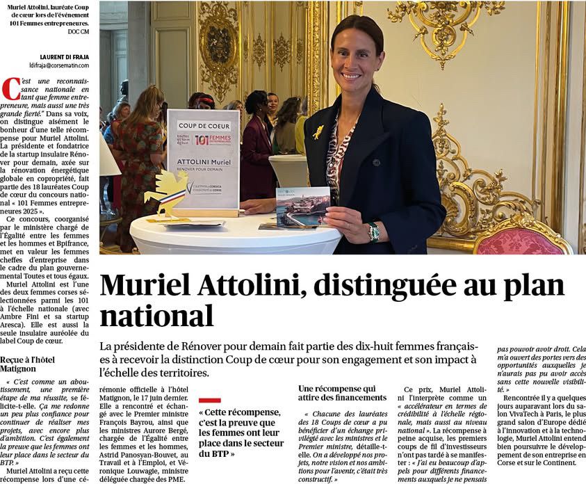 Muriel Attolini, distinguée au plan national, La présidente de Rénover Pour Demain...